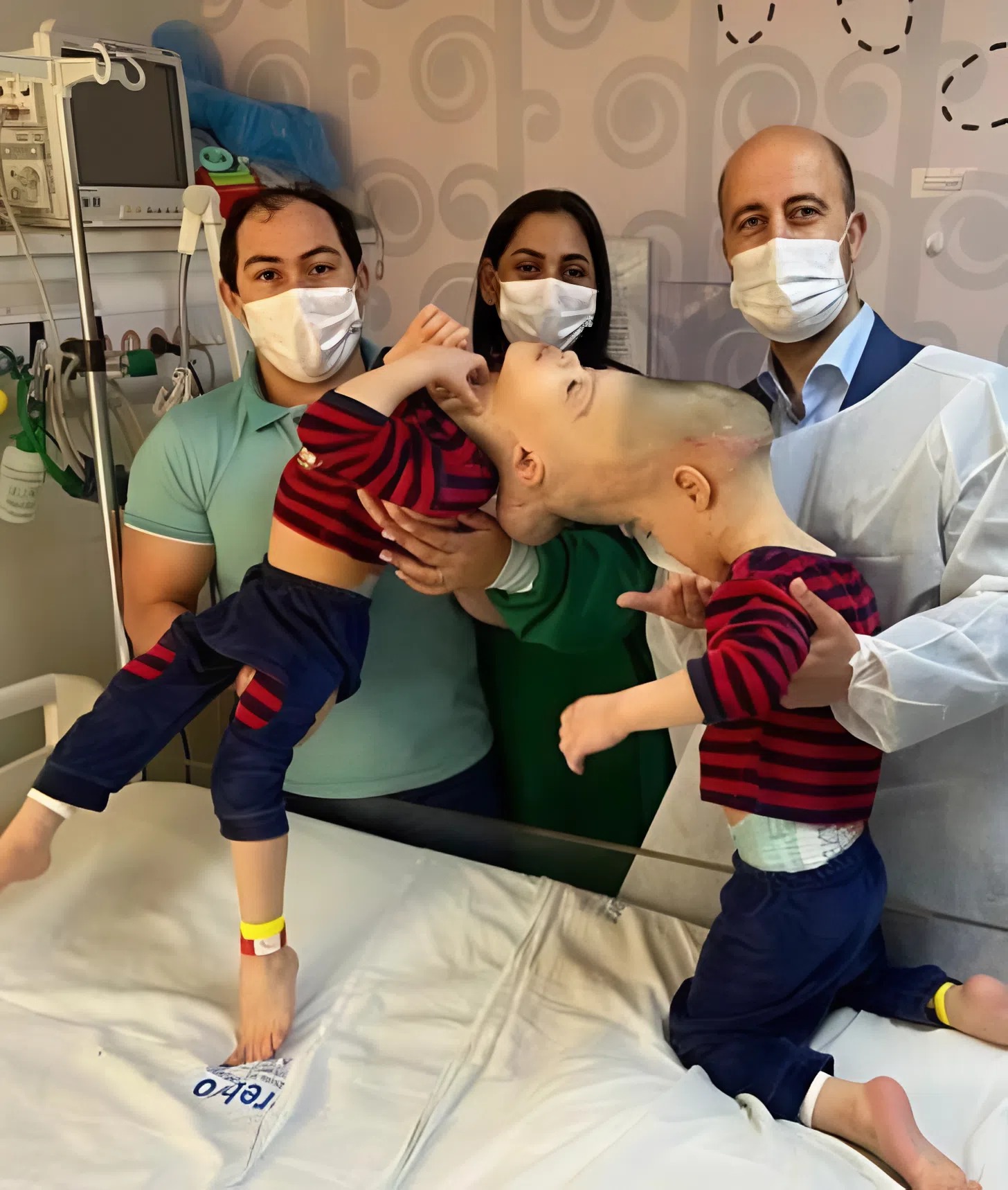 Their parents, overwhelmed but hopeful, sought help at a specialized children’s hospital in Rio de Janeiro, where more than 100 medical experts from various fields united to take on what was seen as one of the most complex surgeries imaginable. Under the leadership of the renowned surgeon Noor Suryate Gurjar, famous for his successful operations on conjoined twins in India, a long and meticulous preparation process began. Every possible detail was examined—brain maps, blood vessel connections, and the delicate tissues that linked their skulls. The goal was to carefully separate the boys while preserving as much of their brain function as possible.