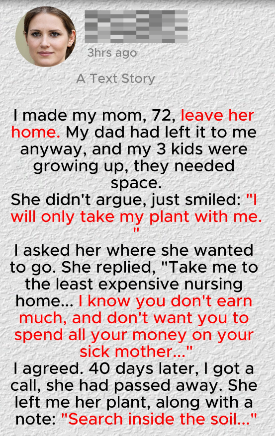 That night, I held the plant against my chest like it was the last piece of her I had left. I whispered apologies into the empty house. I told her I was sorry for not visiting more. Sorry for choosing convenience over compassion. Sorry for not holding her hand when she needed it most.